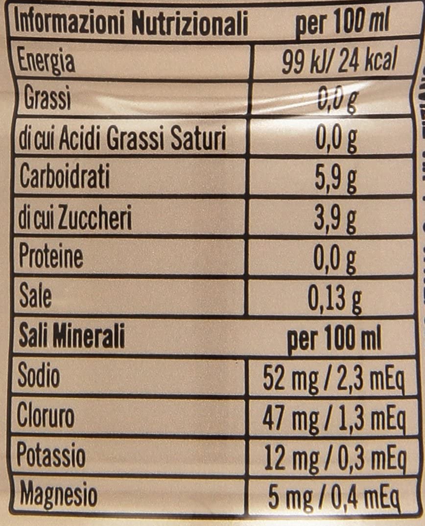 Acqua Zucchero Maltodestrine Acidificante (acido citrico) Sali minerali (sodio cloruro, sodio citrato, monopotassio fosfato, ossido di magnesio) Emulsionanti (E414, E445) Antiossidante (acido ascorbico) Aromi naturali Edulcoranti (sucralosio, acesulfame K) Colorante (betacarotene)