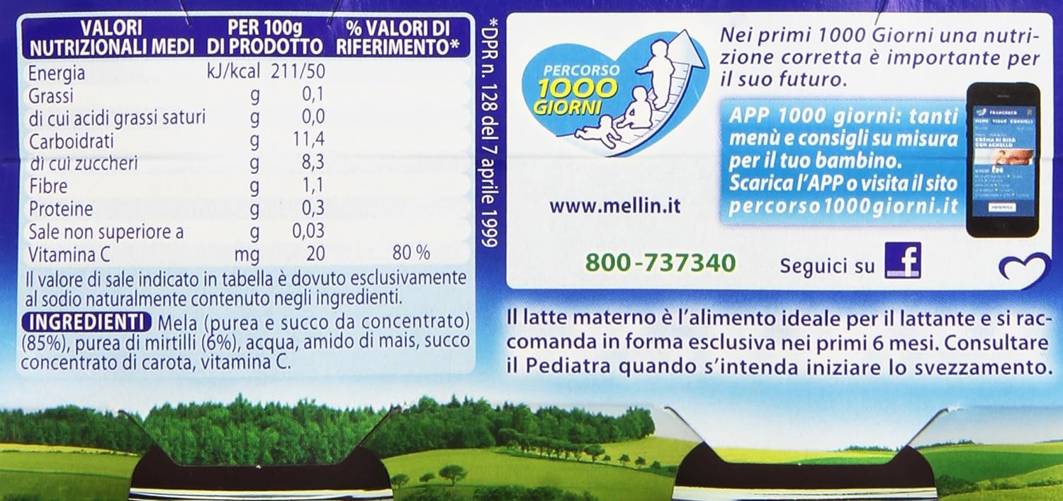![Mellin - Mela Mirtilli, Omogeneizzato per l'Infanzia - 12 confezioni da 2 pezzi da 100 g [24 pezzi, 2400 g]](http://raspada.shop/cdn/shop/products/61UYq4yymYL._AC_SL1472_a08be9c9-00d7-4df3-a28d-5d6d083fa532_1445x.jpg?v=1701186343)