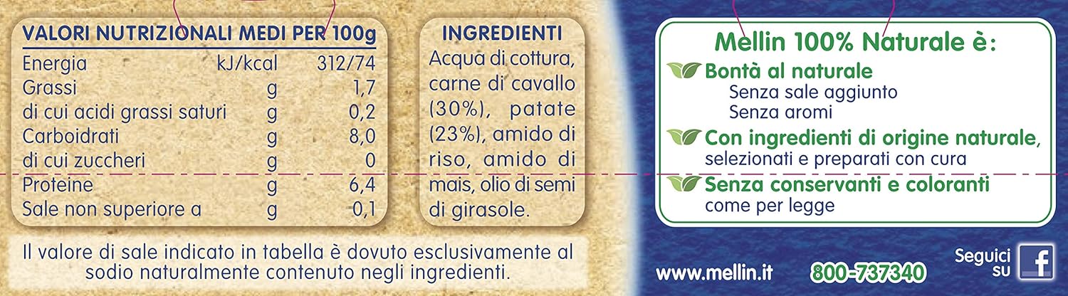 Mellin Omogeneizzato di Cavallo e Patate 100% Naturale – 24 Vasetti da 80 gr
