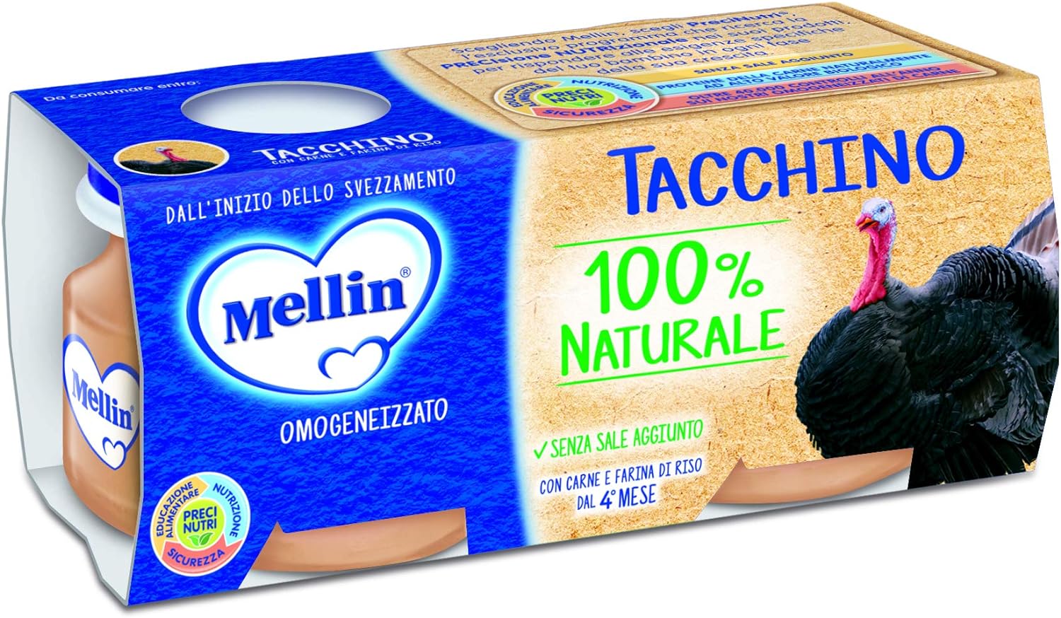 Mellin Omogeneizzato di Tacchino 100% Naturale – 12 Vasetti da 80 gr