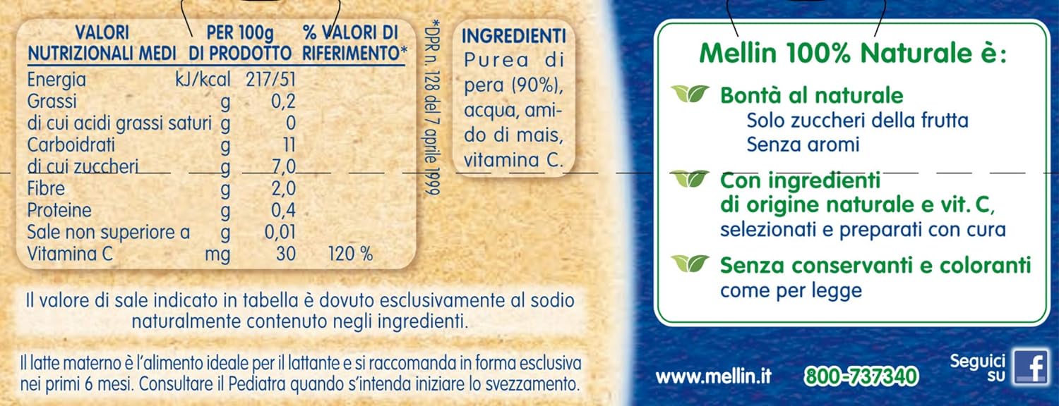 Mellin Omogeneizzato Pera - 24 vasetti da 100 gr