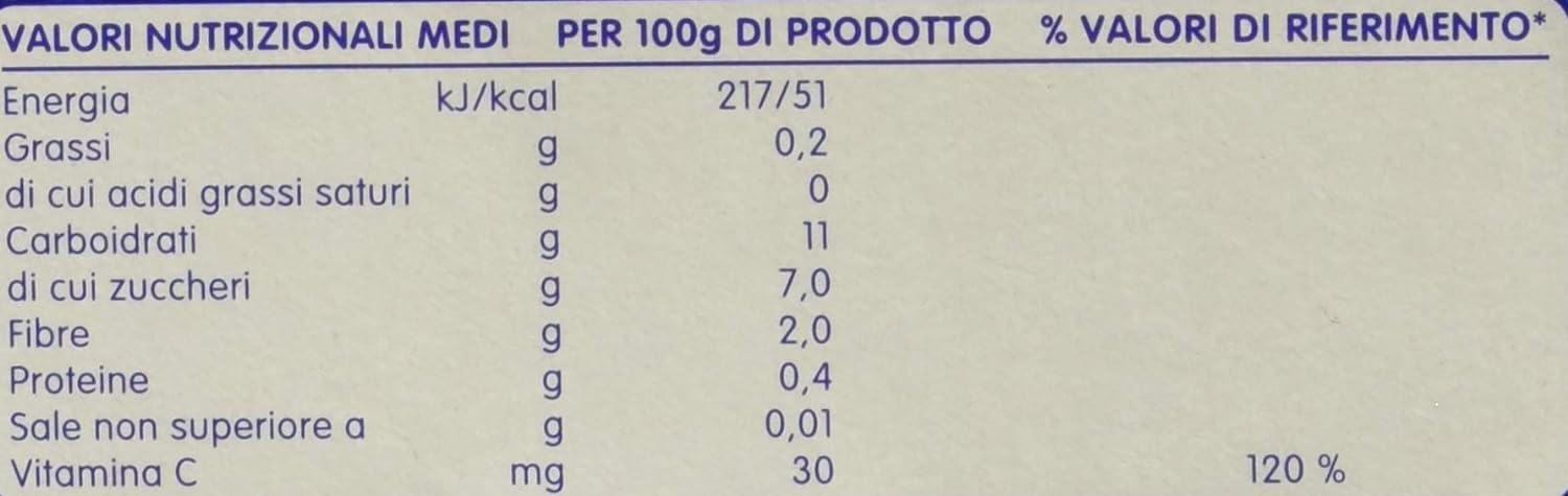 purea di pera (90%), acqua, amido di mais, vitamina c.