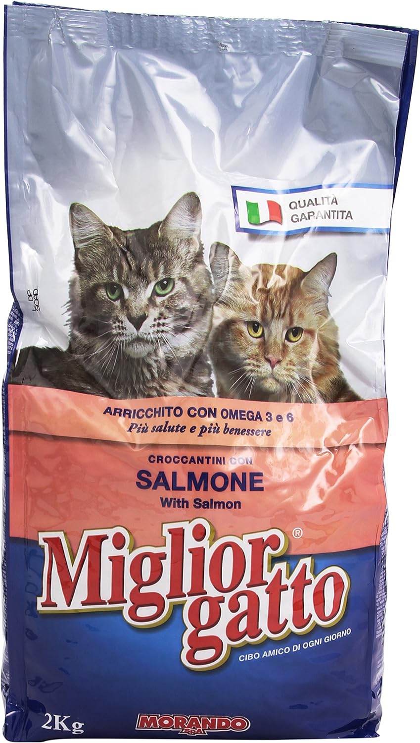 Migliorgatto - Croccantini Con Salmone, Arricchiti Con Omega 3 E 6 - 3 pezzi da 2 kg [6 kg]
