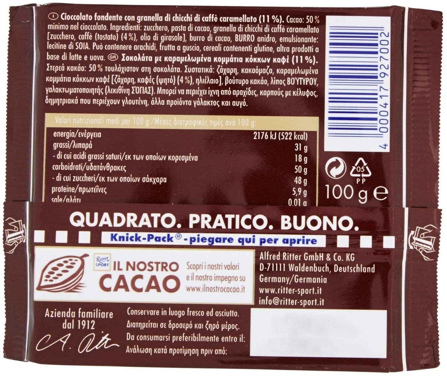 Ritter Sport Cioccolato Fondente con Caffè Arabica, 100g