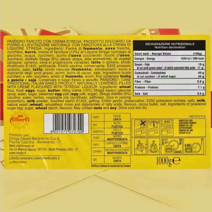 Strega Alberti Pandoro Soffice Farcito con Crema al Liquore Strega 1kg (2023)